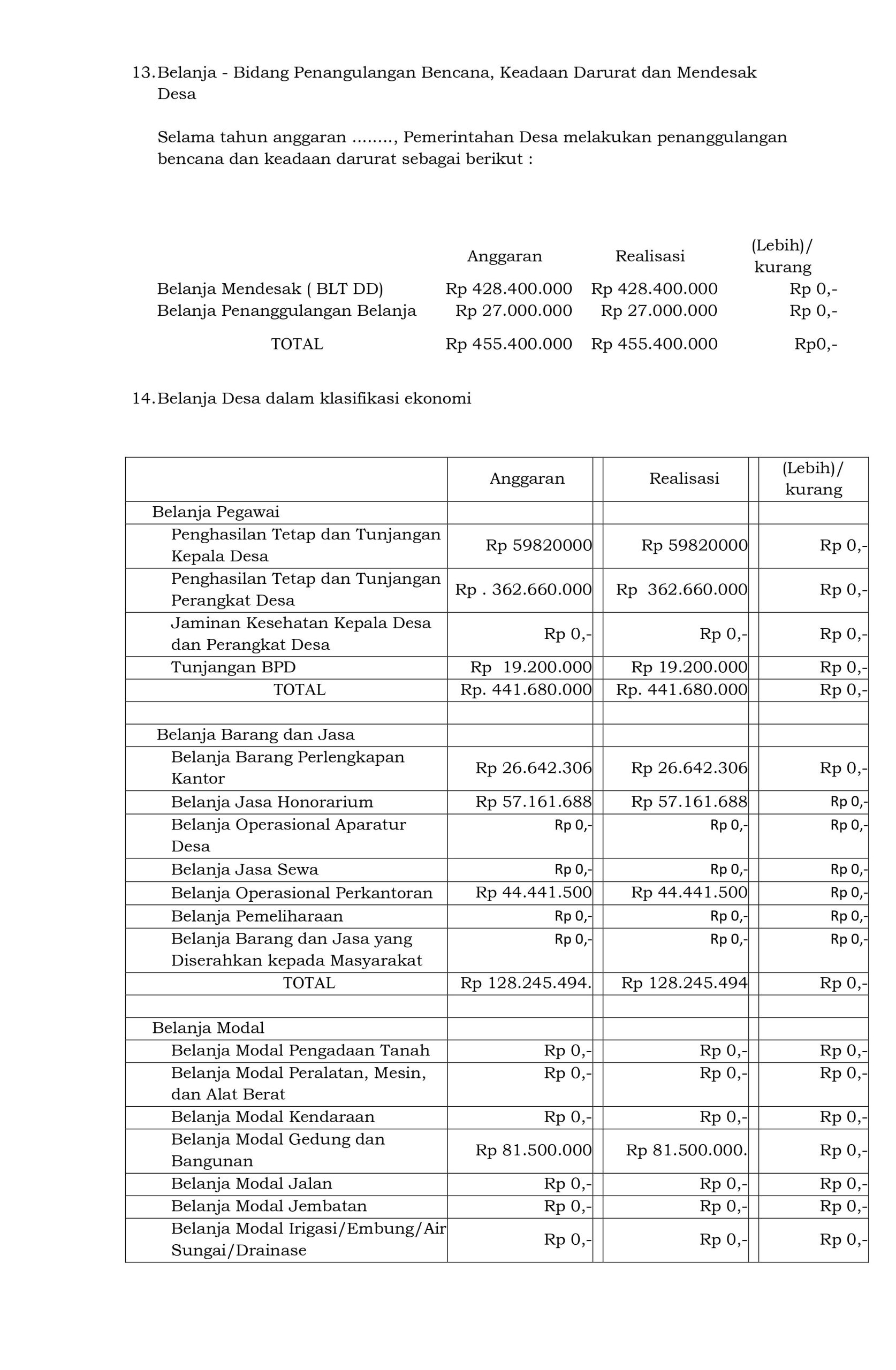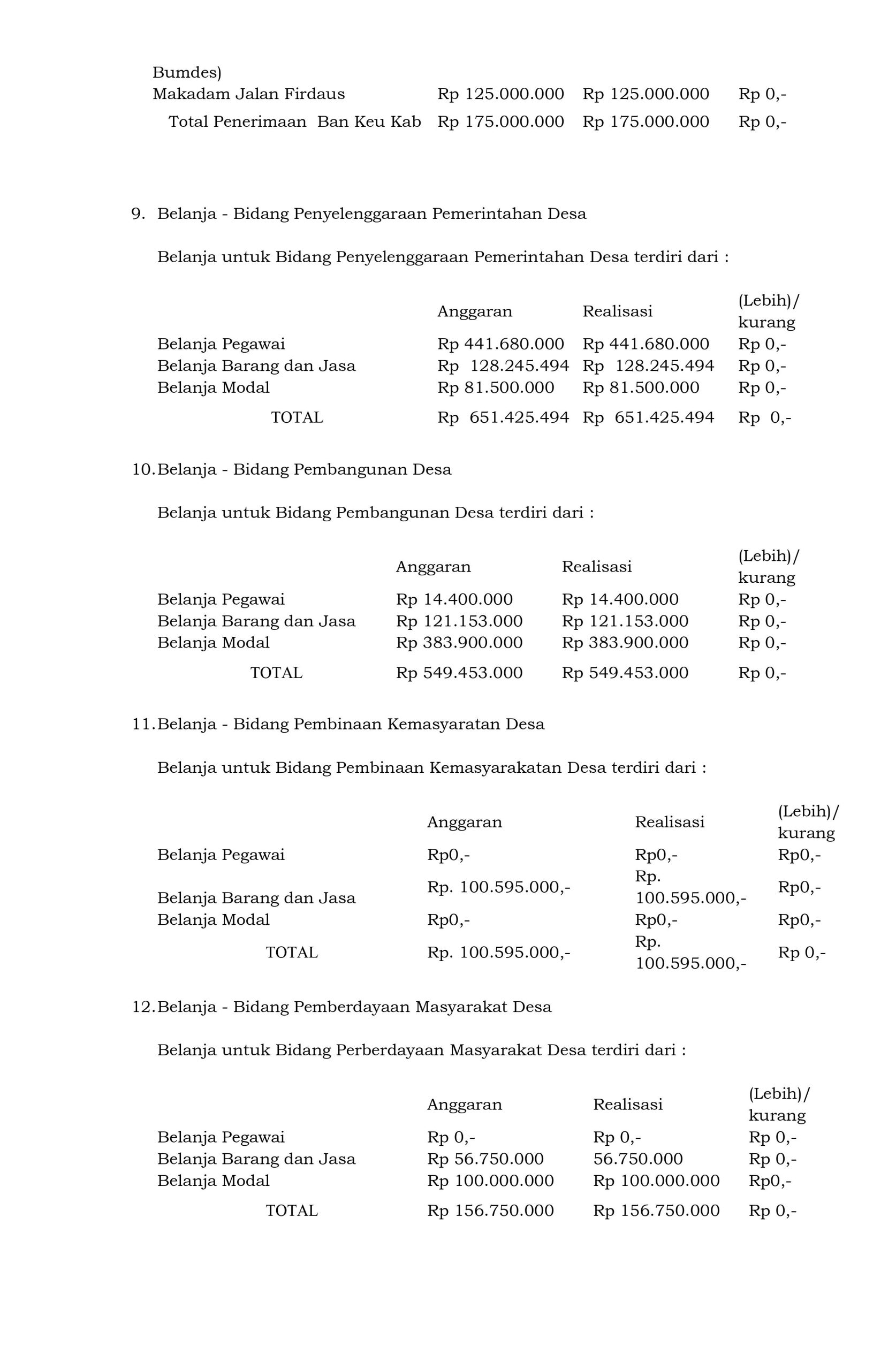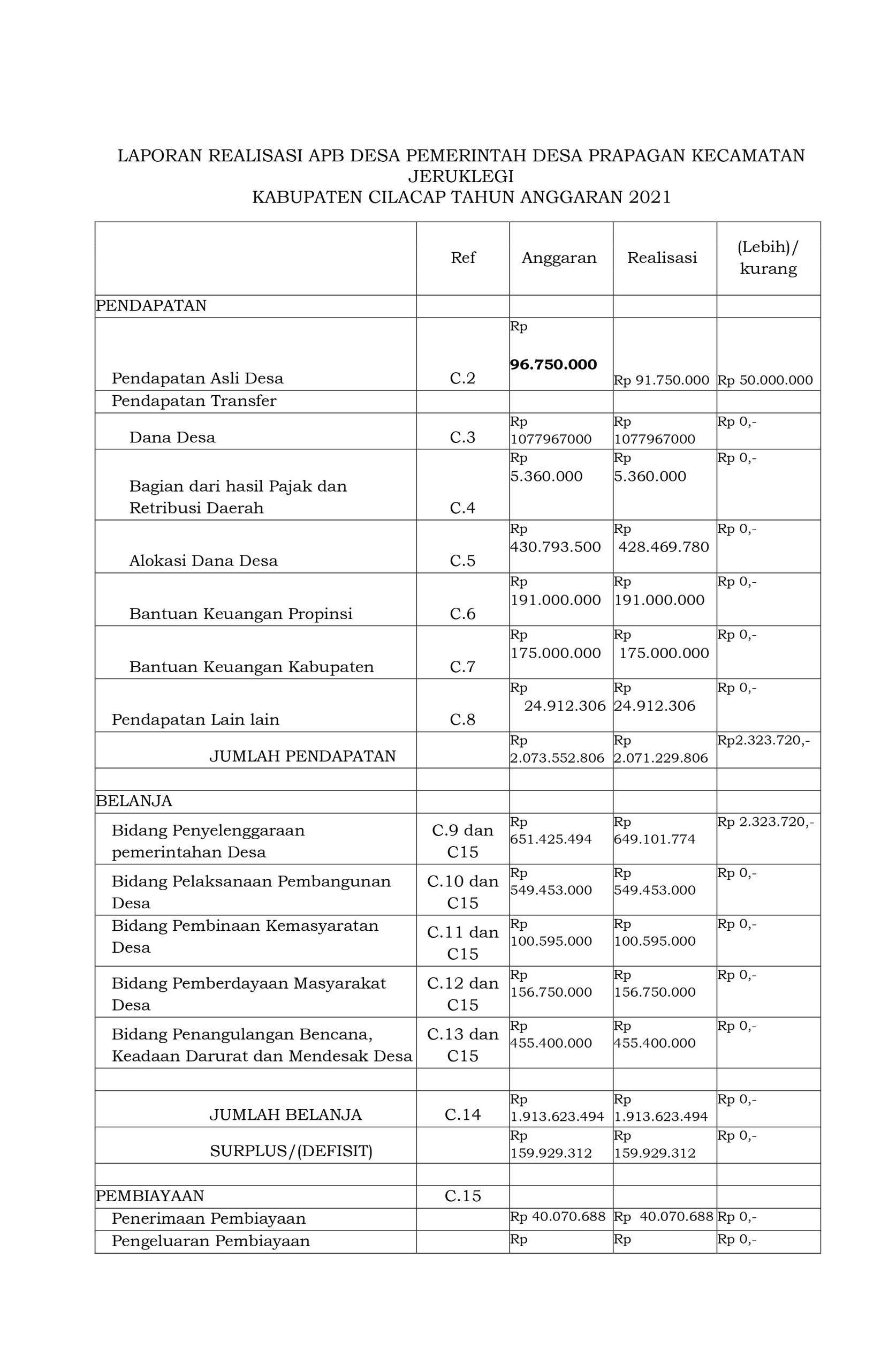 LAPORAN REALISASI APB DESA PEMERINTAH DESA PRAPAGAN KECAMATAN