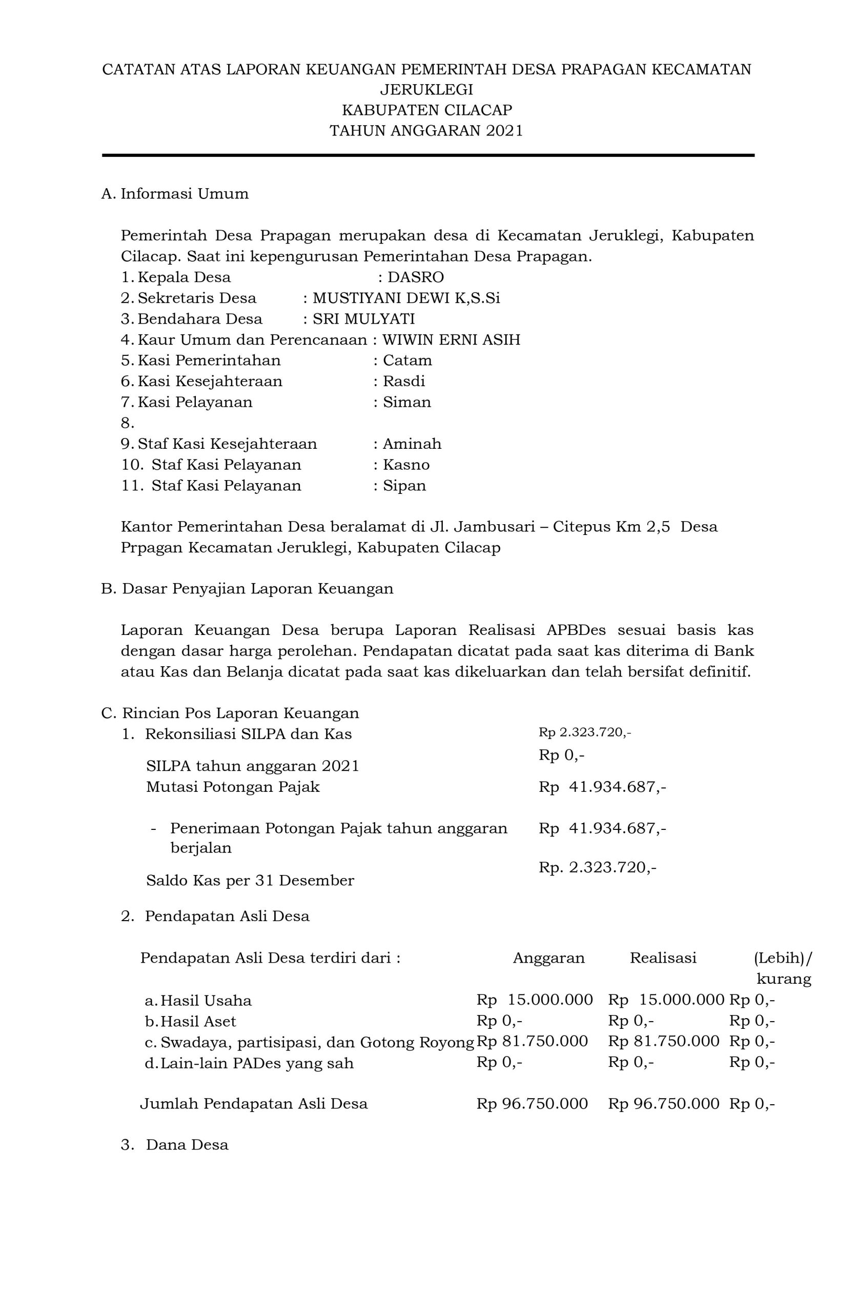 LAPORAN PERTANGGUNGJAWABAN PEMERINTAHAN DESA PRAPAGAN TAHUN ANGGARAN 2021
